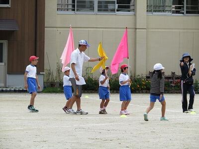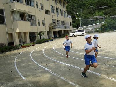 9月3日(木)尾向小に青空が戻ってきました。子ども達はこのところの雨で運動会の練習がいつも室内で行われ、少し元気をもてあまし気味でした。