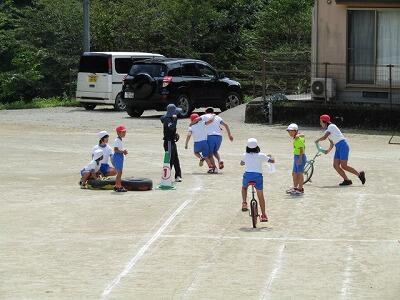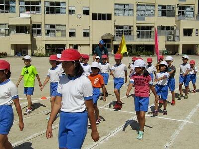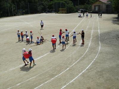 9月15日(火)合同運動会に向けて向山児童館の子ども達13人が、尾向小の運動場に練習にやって来ました。