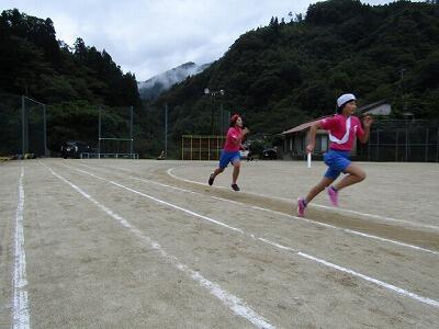 9月16日(水)久しぶりに朝から雨模様。しかし、全校体育の頃には雨も上がり、水はけのよい尾向小運動場はベストコンディション。