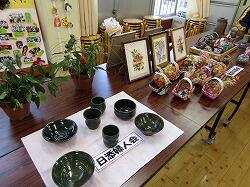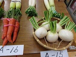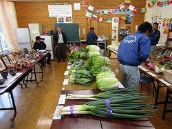 作品は地区の婦人会、高齢者クラブ、個人の方々、農産物はそれぞれの農家の皆さんが自慢の野菜を持ち寄られました。
