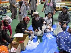 唐揚げ、ウインナー、ウズラの卵等、子ども達にとっては大好きなおかずばかりで、楽しそうに弁当の入れ物に詰めていました。