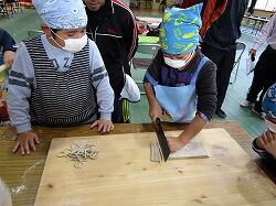 11月23日(月)勤労感謝の日、休日にも関わらず、たくさんの保護者の方々による収穫祭前日準備が行われました。朝早くから、お母さん方はそばの粉を練る・延ばす・切る等の作業や出汁作りを中心に、お父さん方は会場作りやまき作り等の作業をされました。夕方までかかって全て準備が整いました。本当にご苦労さまでした。