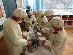 12月22日(火)2学期の勉強のまとめもほとんど終わった子ども達は、冬休み前のお楽しみ会が真っ盛りです。昨日は5・6年生に引き続き、今日は1・2年、3・4年生も自分たちで計画を立て、「お菓子作り」をしていました。