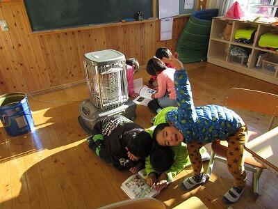 1時間目の休み時間に教室を覗いてみると、ストーブの回りや日だまりに子ども達が集まっていました。尾向小学校の冬の一コマです。