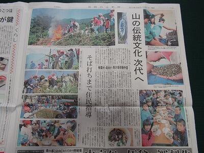 12月21日(月)今年1年間ずっと「子ども焼畑体験学習」を取材されていた新聞社の記者の方が、尾向小学校の取組を新聞で大きく紹介してくださいました。