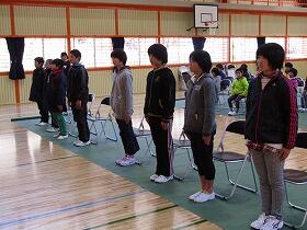 今までは歌や合奏の練習でしたが、今回から式の中身の練習に入りました。教務主任の先生の指導の下、背筋の伸びたよい姿勢で練習が進みました。寒い体育館でしたが、子ども達は真剣な表情で、一つ一つの式の流れをつかんでいきました。