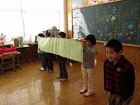 今日は今年度最後の参観日でした。先日は学習発表会で、素晴らしい発表をして人々に感動を与えてくれた子ども達ですが、今度は各学年で嗜好をこらした感謝の気持ちいっぱいの参観授業となっていました。子ども達の1年間の成長をご覧になり、おいで頂いたたくさんの保護者の方々も感慨もひとしおという感じでした。