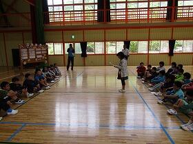 朝はまだ肌寒い感じがしましたが、日中は夏を思わせる蒸し暑さでした。そんな中子ども達は最後の「体力テスト」に挑みました。全校児童が縦割りグループとなり、ソフトボール投げ→50m走→立ち幅跳び→長座体前屈を順々に回り、最後に全員でシャトルランを行いました。