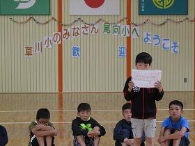 今年の「交流椎葉」が始まりました。尾向小には草川小から13名の子ども達がやって来ました。歓迎式では大変緊張していた子ども達も給食や昼休みを過ごすと徐々に表情がほぐれてきて、尾向小の子ども達との会話も弾むようになったようです。