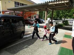 今日は日曜日でしたが、「椎葉村合同健康診断」のために登校日となり、児童は午前中椎葉小に行きました。午後は、この機会を利用し「風水害想定避難訓練」を行いました。