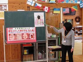 業間の時間を使い6月の「保健指導」が行われました。今日は「歯磨き」がテーマです。養護教諭の先生が、いろいろな図や写真を使いながら、むし歯のできる原因や歯の正しい磨き方について丁寧に指導をしてくださいました。今日からの歯磨きに早速活かしてほしいです。