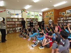 今日、5・6年生はALTの先生との外国語活動でした。日頃目にする英語で書かれた看板を探す学習や楽しいトランプゲームをしました。みんな英語の発音がきれいでした。