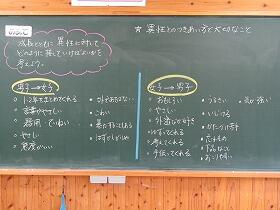 5・6年生は性教育の一環で「異性の友達」という授業を学級担任と養護教諭のT・Tで行いました。思春期の入り口にいる5・6年生にとって大切な授業です。授業の中では、男女がお互いに相手のよさや特徴をよくとらえた意見がたくさん出で、日頃の友達関係がとてもよいことを改めて感じました。