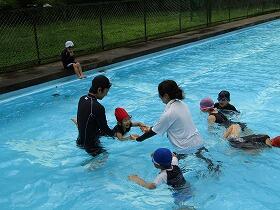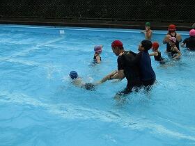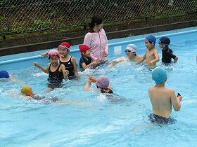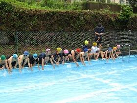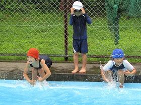 6月13日(月)今年のプール開きを行いました。あいにくの雨模様でしたが、気温も水温もそれほど低くなく、子ども達は最初こそ寒そうにしていましたが、だんだん慣れてきて大歓声をあげて今年初めての水の感触を楽しんでいました。