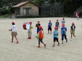 昨日・今日は5・6年生は椎葉小学校での集合学習で学校におりません。しかし、運動場では、1~4年生だけで鼓笛の練習が行われています。