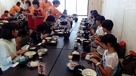 そば打ち体験では、講師や保護者の方々に手順を教えていただきながら活動をし、そばを打った後、全員で試食を行いました。自分たちで栽培したそばの味は格別のようでした。子どもたちは、これまでの活動を思い出しながら、おいしくそばをいただいていました。