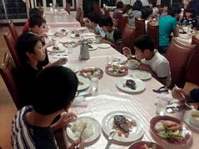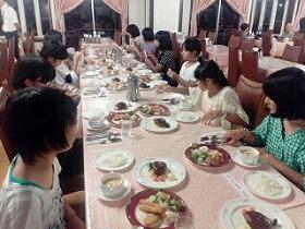 昨夜はホテルで豪華なディナーを食べたようです。ナイフとフォークを上手く使えたでしょうか!美味しそうですね。