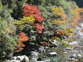 今年は紅葉の時季がいつもの年より遅れ、尾向小周辺は今が紅葉の真っ盛りです。学校近くの川辺は赤や黄色の木の葉に彩られています。