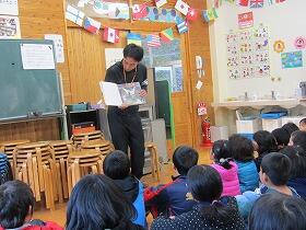 11月は尾向小読書月間です。朝の時間に全校児童をマルチルームに集めて全職員が交代で読み聞かせを行っています。子ども達は時には笑いながら興味津々で聞いています。