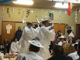 尾向地区に冬の訪れを告げる神楽が始まりました。12月3日は日添地区の冬祭典が行われ、地区の公民館で神楽が奉納されました。その中では、大人の神楽に混じり、日添地区の子ども達の勇壮な神楽も披露され、会場は大きな歓声と拍手に包まれました。学校とはまた少し違った子ども達の真剣で自信に満ちた表情が印象的でした。