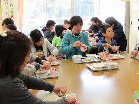 そば打ち体験では、講師や保護者の方々に手順を教えていただきながら活動をし、そばを打った後、全員で試食を行いました。自分たちで栽培したそばの味は格別のようでした。子どもたちは、これまでの活動を思い出しながら、おいしくそばをいただいていました。
