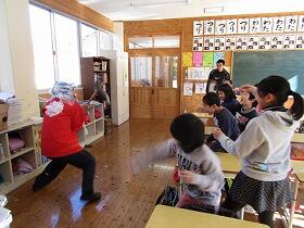 今日は節分。鬼はー外、福はー内!というかけ声が教室に響きました。鬼に扮した先生が教室に現れると、思い切り豆を投げていました。尾向小にたくさんの福と暖かい春がやってきますように!