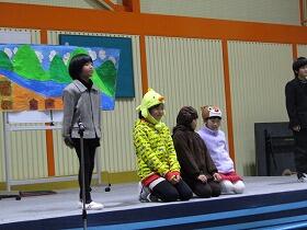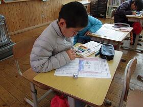 おおいに盛り上がった学習発表会の翌日の学校は、祭りの後のようにどこか静かな雰囲気でした。3・4年生の教室では、学習発表会の短歌を作り、絵日記風の感想文を書いていました。