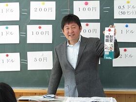 今日の5・6年生の社会科の授業は、役場にお勤めの保護者の方を講師に招いての授業となりました。「為替」や「貿易」について、円高・ドル安等の意味も含めて自分たちの生活との関わりを分かりやすく教えていただきました。ありがとうございました。子ども達のこれからのニュースを見る目が変わると思います。