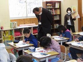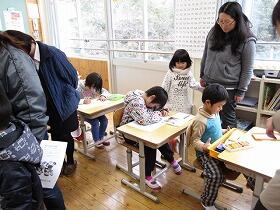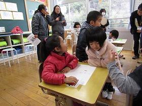 尾向小に入学予定の3人の子ども達がお母さんと一緒に説明会にやってきました。1年生の授業を見学した後、後半は一緒に「創作ジャンケンゲーム」を楽しみました。4月にこの3人が入学してくるのが楽しみです。