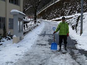 金曜日、土曜日と降り続いた雪もようやくあがり、明日の子ども達の登校に備えて、教頭先生と学校の坂道に融雪剤を散布しました。地域の方が重機で雪をどけてくださったので助かりました。久しぶりの太陽も顔を出して日差しもあるので雪も解けるのではないかと期待しています。