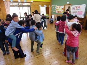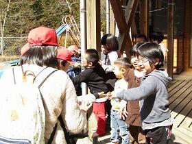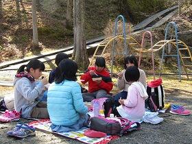 絶好の天気のもと、お別れ遠足が行われました。体育館で心のこもったお別れ集会をしたあと、約2kmを歩いて向山児童館に行き、児童館生と楽しくゲームをしました。園庭でお弁当を一緒に食べてから、最終目的地である山村公園に行き、思い切りドッジボールで体を動かしました。6年生とはこれで最後の遠足になりましたが、思い出に残るものとなりました。