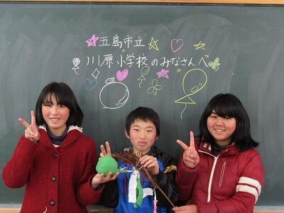 今朝学校に地域の方から木の枝についた風船が届けられました。追手納地区の山の木に引っかかっていたのだそうです。風船には「長崎県五島市立川原小学校閉校記念式典」と書いてある札が付いていました。閉校記念式典で飛ばした風船が風に乗って、遠く長崎県の五島列島の小学校から尾向まで飛んできたのですね。閉校は寂しいことですが、子ども達の思いが運ばせたのだと思います。