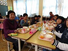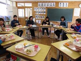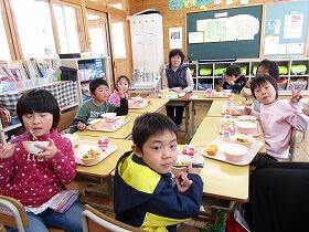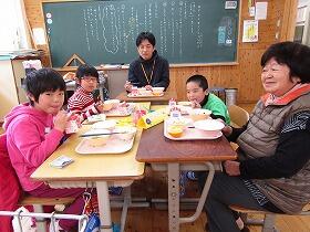 明日は卒業式。6年生にとって今日が小学校最後の給食となりました。この給食のお陰で体も大きく強くなりました。3人の6年生は味わいながら食べていました。