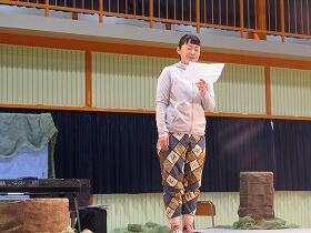 劇は山の学校を舞台にしたもので、尾向小学校にはぴったりでした。子ども達や先生方の出演もあり、随所に笑いがちりばめられ、しかし最後はジーンと心に響くお話でした。その演技や歌は迫力があり、子ども達はすぐに話の中に引き込まれていきました。