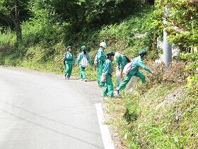 6月18日(日)本校の緑の初年団が「道々クリーン作戦」を行いました。村内一斉清掃に合わせて、自分たちの手で地区をきれいにし豊かな自然を守ろうという目的で毎年行っています。