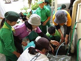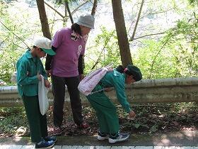 当日は多くの保護者の方々にも手伝ってもらい、学校をゴールに校区内を4つのコースに分けて歩きながらゴミや空き缶を拾いました。車で通るときれいに見えるところもゆっくり歩いてみると、道の脇や側溝にはたくさんのゴミがありました。