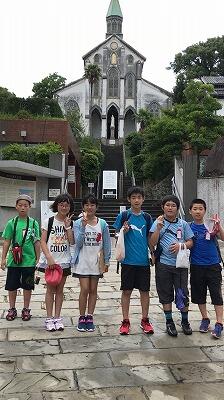 子ども達は2日目の朝を爽やかに迎え、午前中は長崎市内の自主研修でした。各班毎にルートを決め、町ゆく人たちに椎葉村のPRパンフレットを配りながら、長崎市内の名所・旧跡を巡り、ゴールの大浦天主堂を目指すというものです。椎葉とは違う都会の町並みを眺めながら、きっと小さな「冒険」を楽しんだことと思います。