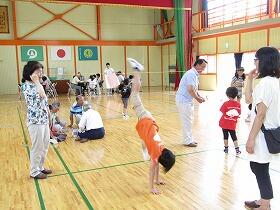 しかし、体育館からはとても楽しそうな声が聞こえてきたので行ってみると、1・2年生が合同で体育の授業中でした。チーム対抗で作戦を立てながらいろいろなゲームをして、力一杯体を動かしていました。