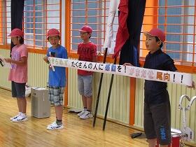 終業式では、3年生の代表が1学期を振り返ってという題で発表をしました。一度も原稿を見ずに、水泳で頑張ったことや梅ちぎりのことを堂々と発表しました。また、詩の暗唱では同じく3年生の代表が「ひまわり」をすらすらと暗唱しました。子ども達の成長を感じました。その後には、担当の先生からの夏休みの学習や生活についてのお話を真剣に聞いていました。