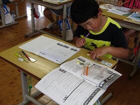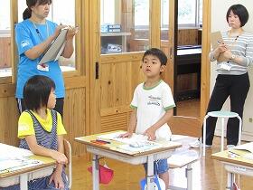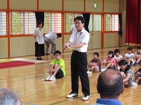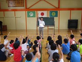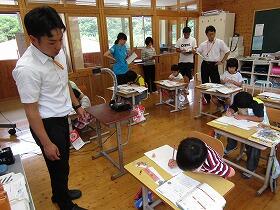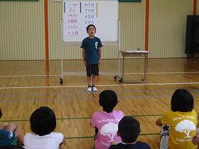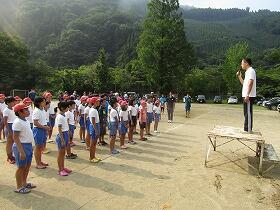 終業式では、3年生の代表が1学期を振り返ってという題で発表をしました。一度も原稿を見ずに、水泳で頑張ったことや梅ちぎりのことを堂々と発表しました。また、詩の暗唱では同じく3年生の代表が「ひまわり」をすらすらと暗唱しました。子ども達の成長を感じました。その後には、担当の先生からの夏休みの学習や生活についてのお話を真剣に聞いていました。