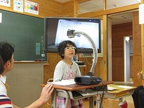 1学期3回目の研究授業が2年生で行われました。算数の「大きな数」の単元で「何百+何百、何百-何百」の学習でした。お金の模型を使って考え、式や言葉に表すという学習でしたが、実物投影機を使って自分の考えを上手に発表できていました。