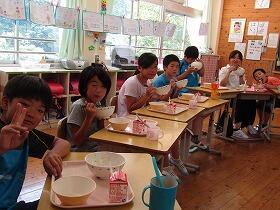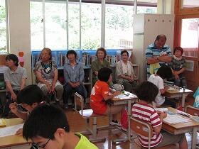 7月11日(火)世代間交流学習・交流給食を行いました。今年もたくさんの方々に来ていただき、授業参観の後、昔の遊び・昔のくらし・学校生活の思い出の各コーナーで、子ども達と楽しい時間を過ごしてもらうことができました。帰られるときには、「この交流を毎年楽しみにしています」「これに来ると子ども達に元気をもらえます」「尾向小学校の給食はとてもおいしいですね。」等の感想をいただきました。