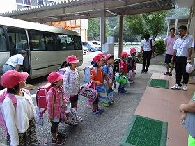1・2年生が集合学習の2日目の朝、元気に学校を出発していきました。1年生にとっては初めての集合学習ですが、「きのう、もう友達ができました!」とうれしそうに話していました。