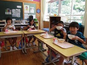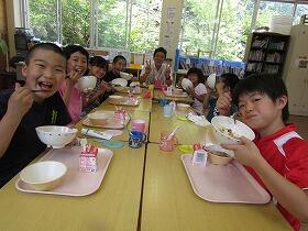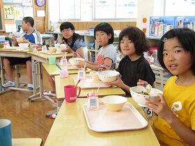 給食の時間には「地産地消の日」ということで、「宮崎牛の焼き肉丼」をみんなで美味しくいただきました。