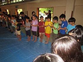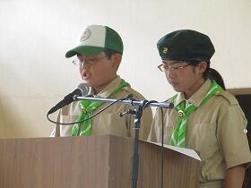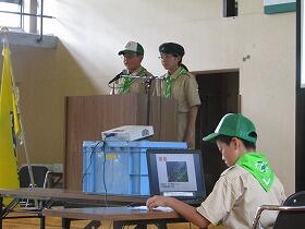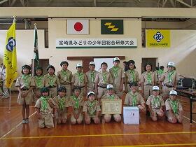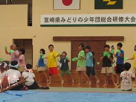 7月22日・23日の1泊2日で、恒例の「宮崎県緑の少年団総合研修大会」に参加してきました。児童19名・保護者15名・職員5名の計39名で参加しました。交流会では、今年も見事な活動発表をして優良賞を受賞し、ダンスの出し物も素晴らしかったです。テント設営、炊事、キャンドルファイヤー、ウォークラリー等の活動もみなんが力を合わせて頑張りました。