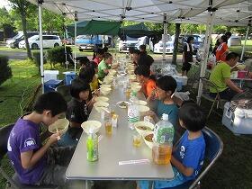 そば打ち体験では、講師や保護者の方々に手順を教えていただきながら活動をし、そばを打った後、全員で試食を行いました。自分たちで栽培したそばの味は格別のようでした。子どもたちは、これまでの活動を思い出しながら、おいしくそばをいただいていました。