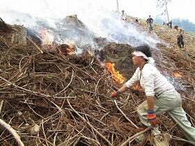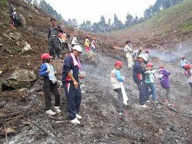 7月31日(月)今年の子ども焼畑体験学習「火入れ・種まき」を行いました。前日まで夕立が続いたので、燃えるかどうかが心配されましたが、やぼ切りや道づくり等の前日までの準備のお陰で、思いの外よく燃え、無事に終えることができました。
