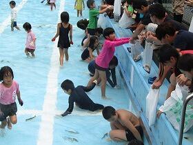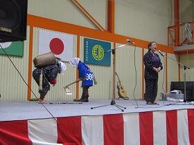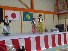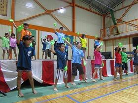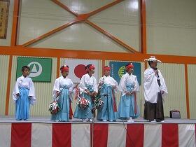 当日は雨の予報のためステージは屋内となりましたが、早朝の神事に始まり、昼間の魚釣り、魚つかみ取り、夜の渓谷の夕べステージ、花火大会と大変盛り上がりました。まさに手作りの祭りでした。尾向小学校の子ども達も「追手納子ども神楽」の舞や「オムザイル」の踊りを披露し、大きな拍手を浴びていました。