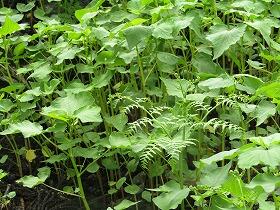7月31日の「火入れ・種まき」から1ヶ月あまり、焼畑の様子を見てきました。山の斜面一面が緑に覆われ、近づいてみるとそばが元気に育っていました。鹿の食害も今のところ心配ないようです。秋の実りが楽しみです。