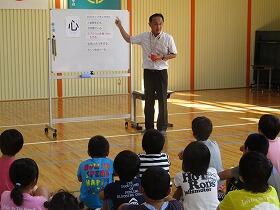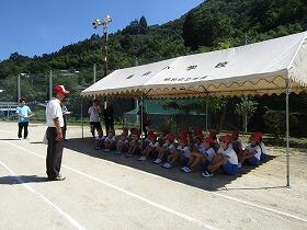私の話では「継続することの大切さ」や、「心のコップを上向き」にして運動会や鼓笛の練習に取り組もうという話をしました。2学期、児童32名、職員11名で、「心のコップを上向き」にして頑張ります!